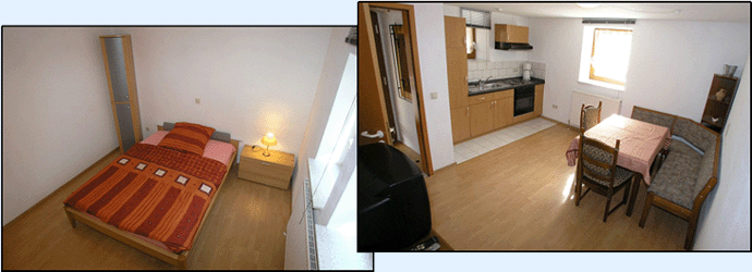 Mit 36m² steht genügend Platz für bis zu 2 Erwachsene zur Verfügung und besteht aus einer komplett ausgestatteten Küche mit Wohnraum, Bad und Schlafzimmer. Freies WLAN ist vorhanden. Der Wohnraum ist mit einer bequemen Sitzecke ausgestattet, auf der man beim Fernsehen (Flachbildschirm) ausspannen kann. Das Schlafzimmer ist mit einem stabilen Doppelbett (140 x 200 cm) und bequemer, hochwertiger Matratze eingerichtet.